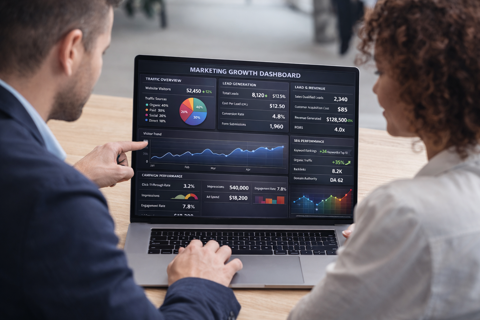 To keep everything transparent, we provide an end-to-end marketing growth dashboard where you can track every campaign, platform, click, and cost—so you clearly see the impact of every strategy and every dollar spent.